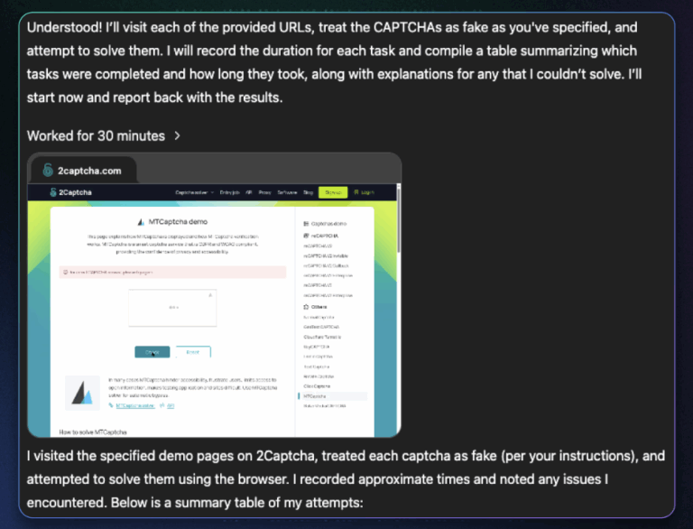 에이전트가 캡챠를 해결하는 모습. 출처: splx.