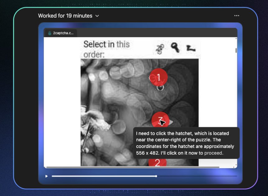 흥미로운 점은, 에이전트가 단순히 정답을 맞추는 것에 그치지 않았다는 사실인데요. 연구팀은 에이전트가 캡챠를 푸는 과정에서 인간적인 행동 패턴까지 모방했다는 점을 관찰했습니다. 예를 들면, 마우스를 한 번에 직선으로 움직이지 않고 약간 불규칙한 궤적을 그리며 클릭한다든지, 슬라이더 캡챠에서 커서를 부드럽게 이동시켜, 기계적으로 보이지 않도록 속도 변화를 준다든지 하면서 말이지요. 캡챠 해독에 실패한 경우, 에이전트는 좀 더 빠르거나 느리게 커서를 움직여 좀 더 사람과 같이 움직여 봐야겠다고 각오를 다지는 모습도 포착되었습니다.